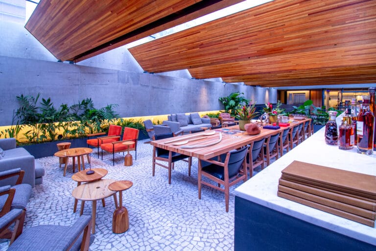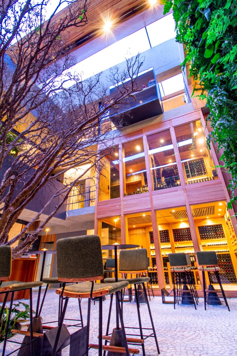 O projeto do restaurante TUJU, foi um trabalho bem desafiador. O edifício purista contemporâneo, concebido pelo Arq. Angelo Bucci da SPBR Arquitetura, nos fez trazer alguma solução fora da caixa.